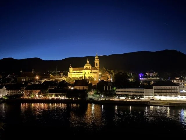 Vue nocturne sur la cathédrale Saint-Ours de Soleure, superbe ville parcourue par l’Aar et qui accueille chaque année les Journées littéraires de Soleure dont c’était la 47ème édition en 2025. Photo: © c.lovey